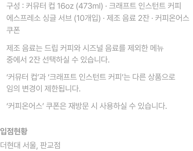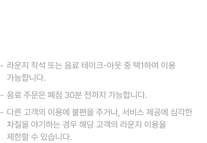 | 10% 할인 | - 대상 업장 : 더 아트리움 라운지 (리테일 상품 제외) | |