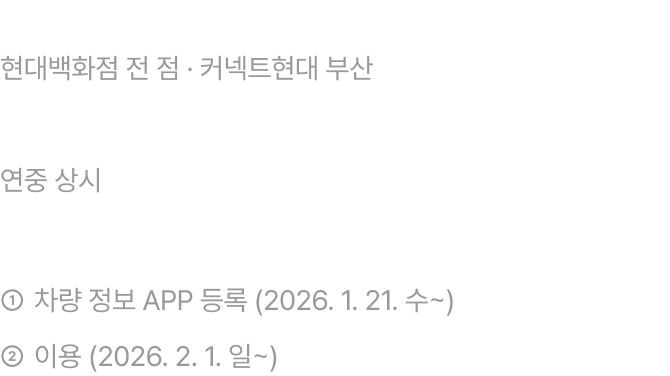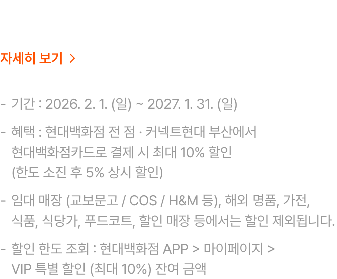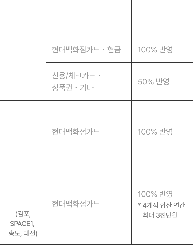 | 현대백화점 • 커넥트현대 부산 | 현대백화점카드・현금 | 100% 반영 |