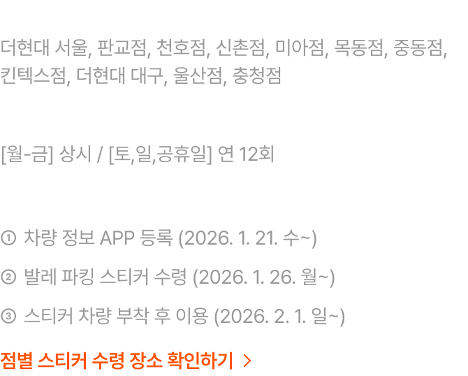 * 4천만 원 이상 세이지 고객 발레파킹 서비스는 천호점, 신촌점, 미아점, 중동점, 킨텍스점, 울산점, 충청점에서 이용 가능